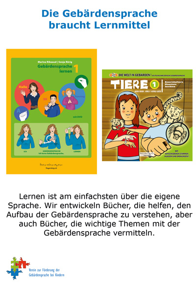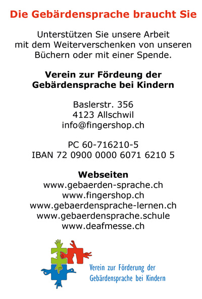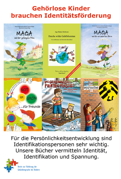 Damit ermöglichen wir den Kindern, anderen Gehörlosen zu begegenen und mehr über das Leben als Gehörlosen und das Leben mit der Gebärdensprache zu erfahren. Identiätsbücher